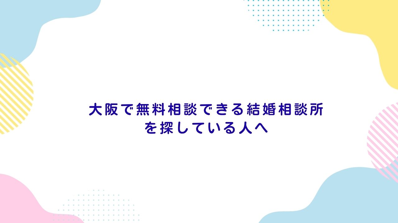 - 大阪で無料相談できる結婚相談所の選び方